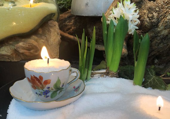 Il granulato di cera vegetale è di altissima qulità. La candela di sabbia non produce residui - tutta la cera può essere bruciata. Inoltre garantiamo che non si producono fumi, di consequenza le decorazioni di granula di cera rimangono puliti. Con questa qualità alta della materia prima, le candele hanno una lunga durata e si risparmia del tempo di accendre sempre nuove candeline per esempio i lumini. Un stoppino di 4 cm ha una durata di circa 4 ore.